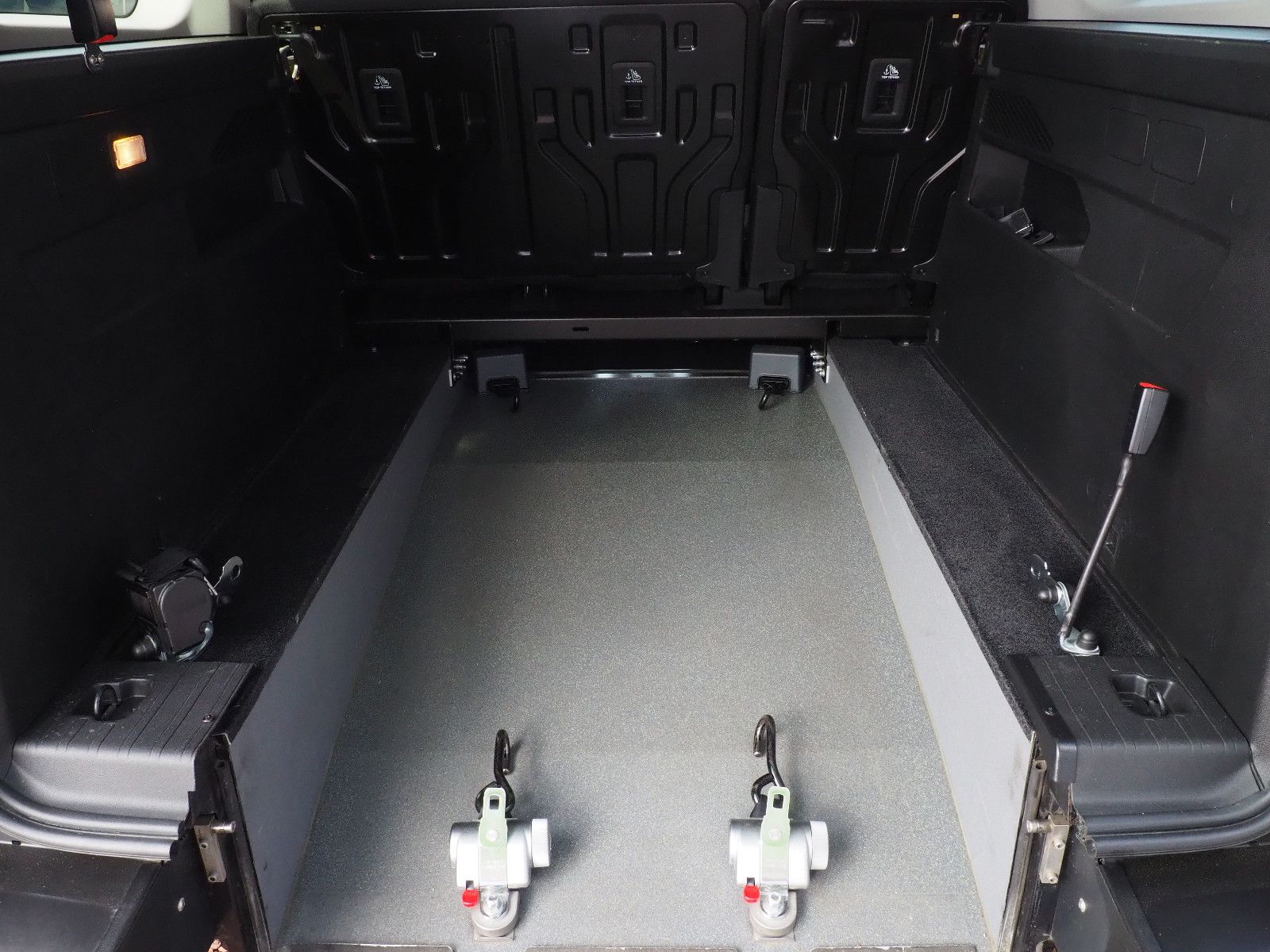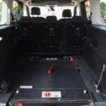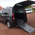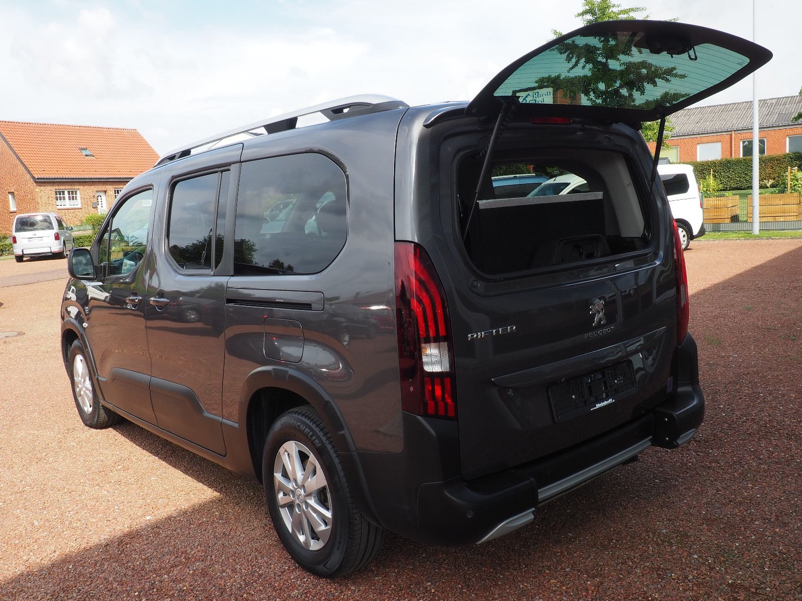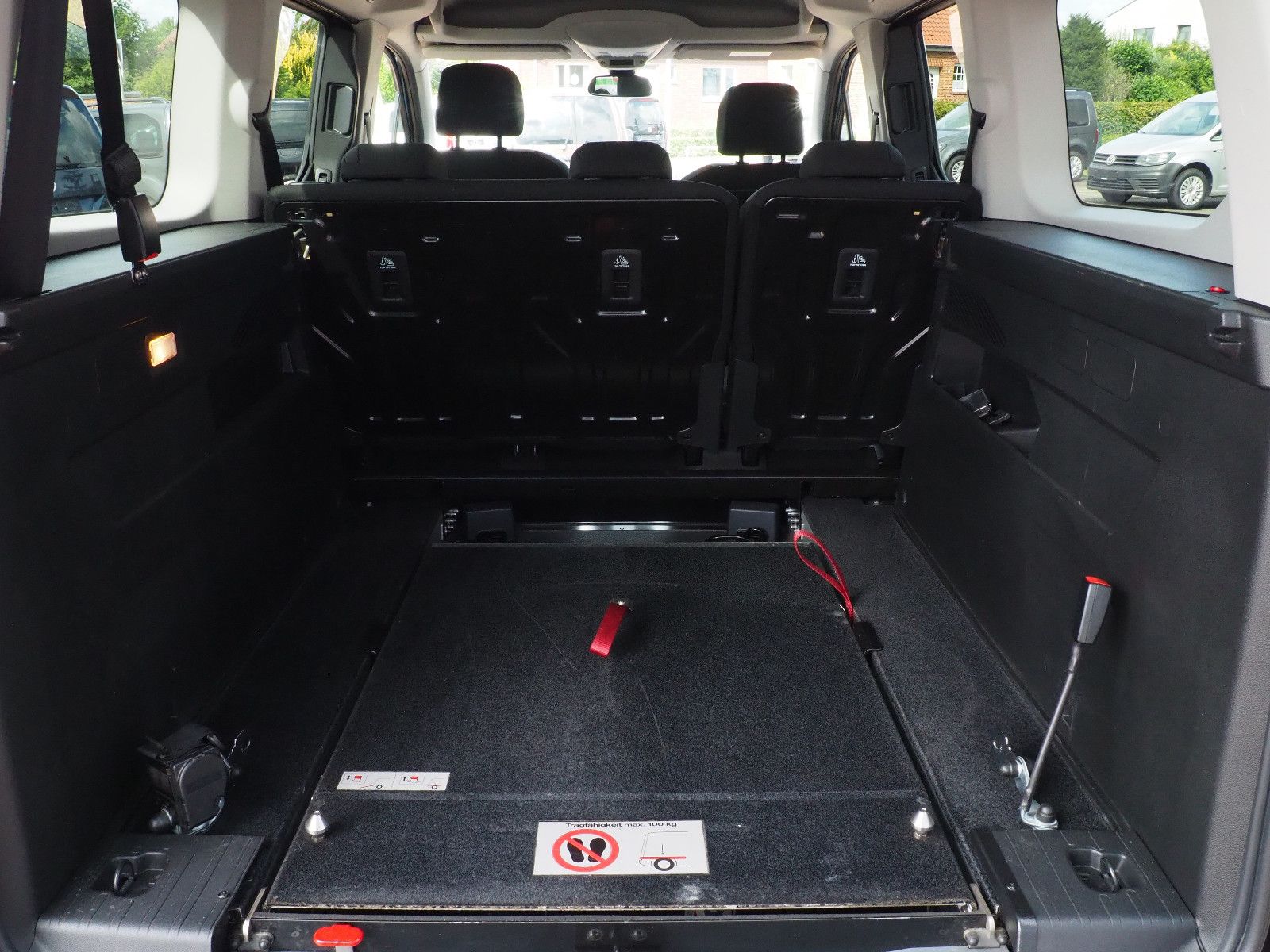 ( 113 ) Peugeot Rifter Allure Automatik L2, langer Radstand mit Heckausschnitt und klappbarer Rollstuhl/Wenderampe. AMF-Bruns Umbau. Die Rampe lässt sich bei Nichtgebrauch vollständig nach vorne umlegen so das wieder ein ebener Ladeboden entsteht. Der Rollstuhl wird mit 2 elektrischen Gurten vorne und 2 Spannretraktoren hinten ordnungsgemäß fixiert, zusätzlich wird die zu befördernde Person im Rollstuhl sitzend mit einem Schulter/Beckengurt gesichert. Bei Rollstuhltransport verbleiben 5 vollwertige Sitzplätze, kein umklappen der 2.Sitzreihe erforderlich, Einfahrbreite/Rampenbreite 77 cm, Einfahrhöhe 142 cm,