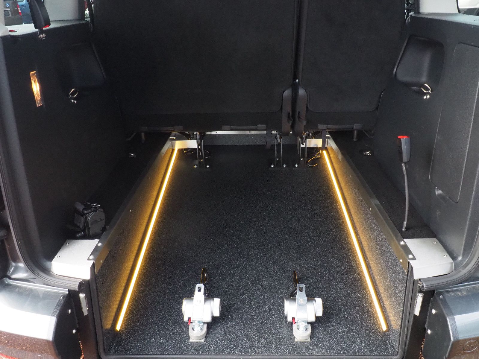 Bei Rollstuhltransport verbleiben je nach Rollstuhlgröße bis zu 3 vollwertige Sitzplätze, ohne Rollstuhltransport als normaler 5 Sitzer nutzbar. Einfahrbreite/Rampenbreite 80 cm, Einfahrhöhe 143 cm,