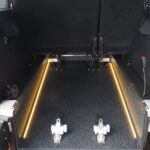 Der Rollstuhl wird mit 2 elektrischen Gurten vorne und 2 Spannretraktoren hinten ordnungsgemäß fixiert, zusätzlich wird die zu befördernde Person im Rollstuhl sitzend mit einem Schulter/Beckengurt gesichert.
