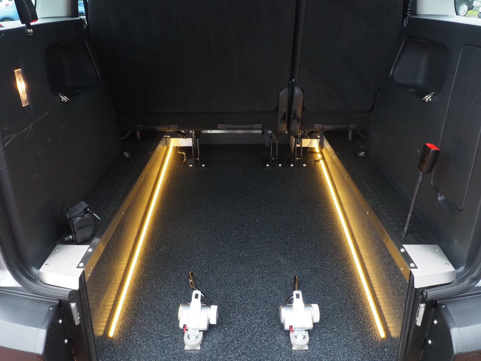 Bei Rollstuhltransport verbleiben je nach Rollstuhlgröße bis zu 3 vollwertige Sitzplätze, ohne Rollstuhltransport als normaler 5 Sitzer nutzbar.