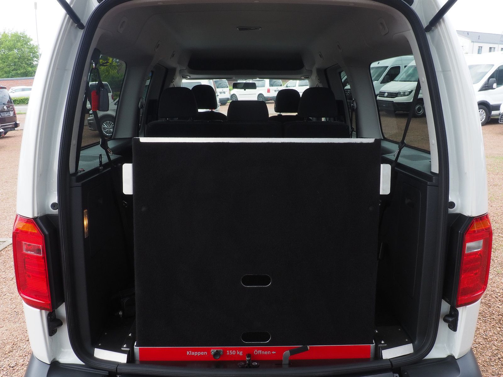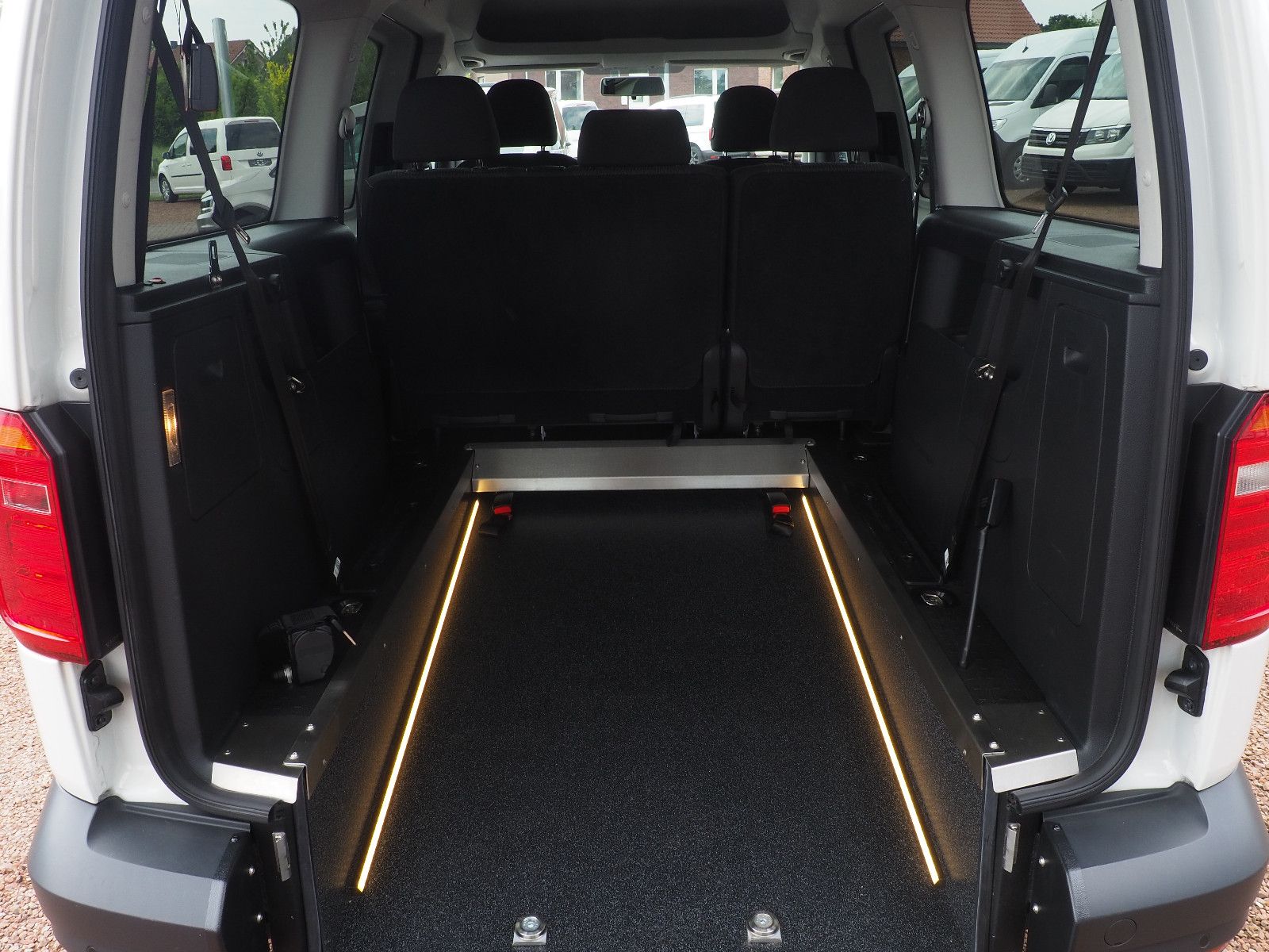 (61) VW Caddy Maxi 7-Sitzer mit Heckausschnitt und klappbarer Rollstuhlrampe. VW Scheckheft gepflegt. LED-Bodenbeleuchtung im Rollstuhlbereich. Die Rampe lässt sich bei Nichtgebrauch nach vorne umlegen so das wieder ein ebener Ladeboden entsteht. Umbau neu durchgeführt!