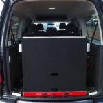 Der Rollstuhl wird mit 2 elektrischen Gurten vorne und 2 Spannretraktoren hinten ordnungsgemäß fixiert, zusätzlich wird die zu befördernde Person im Rollstuhl sitzend mit einem Schulter/Beckengurt gesichert.