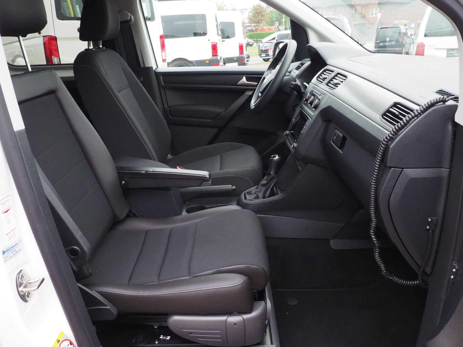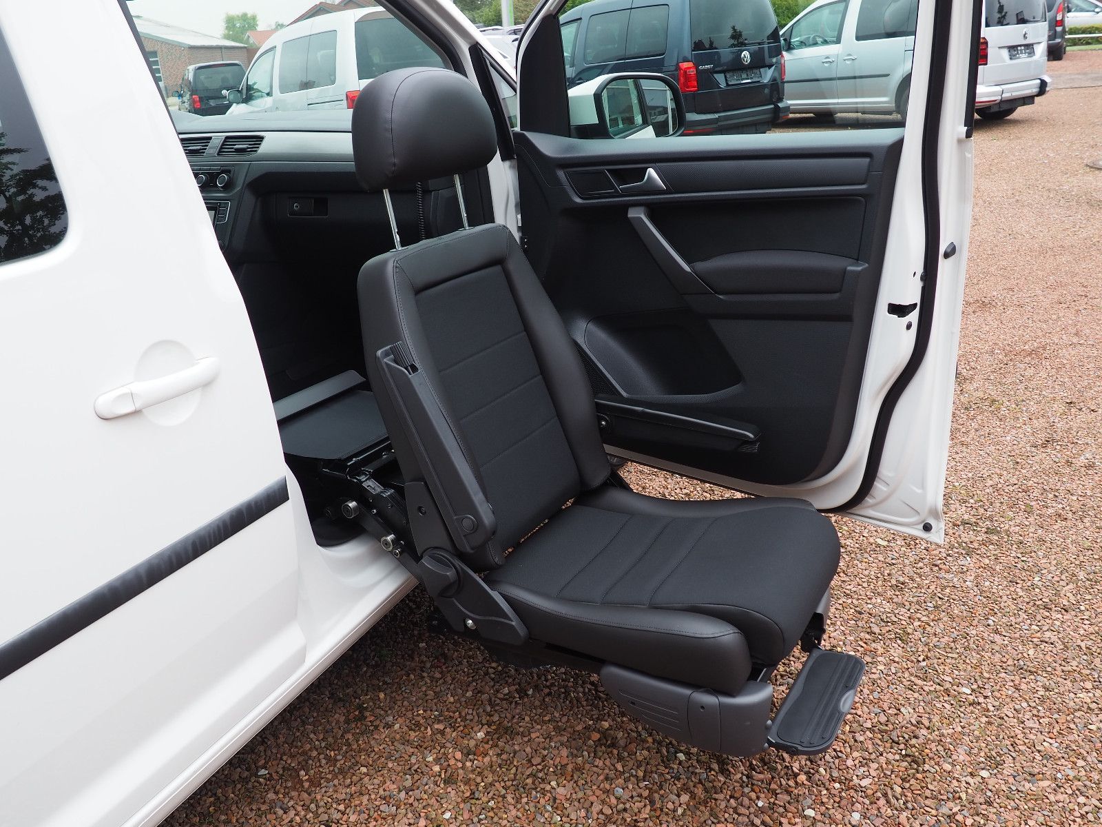 VW CADDY Trendline mit Heckausschnitt und einer AM-Bruns EasyFlex-Rollstuhlrampe/Wenderampe plus AMF-Bruns Kopf/Rückenstütze FutureSafe und elektrischer Schwenk/Hubsitz rechts!